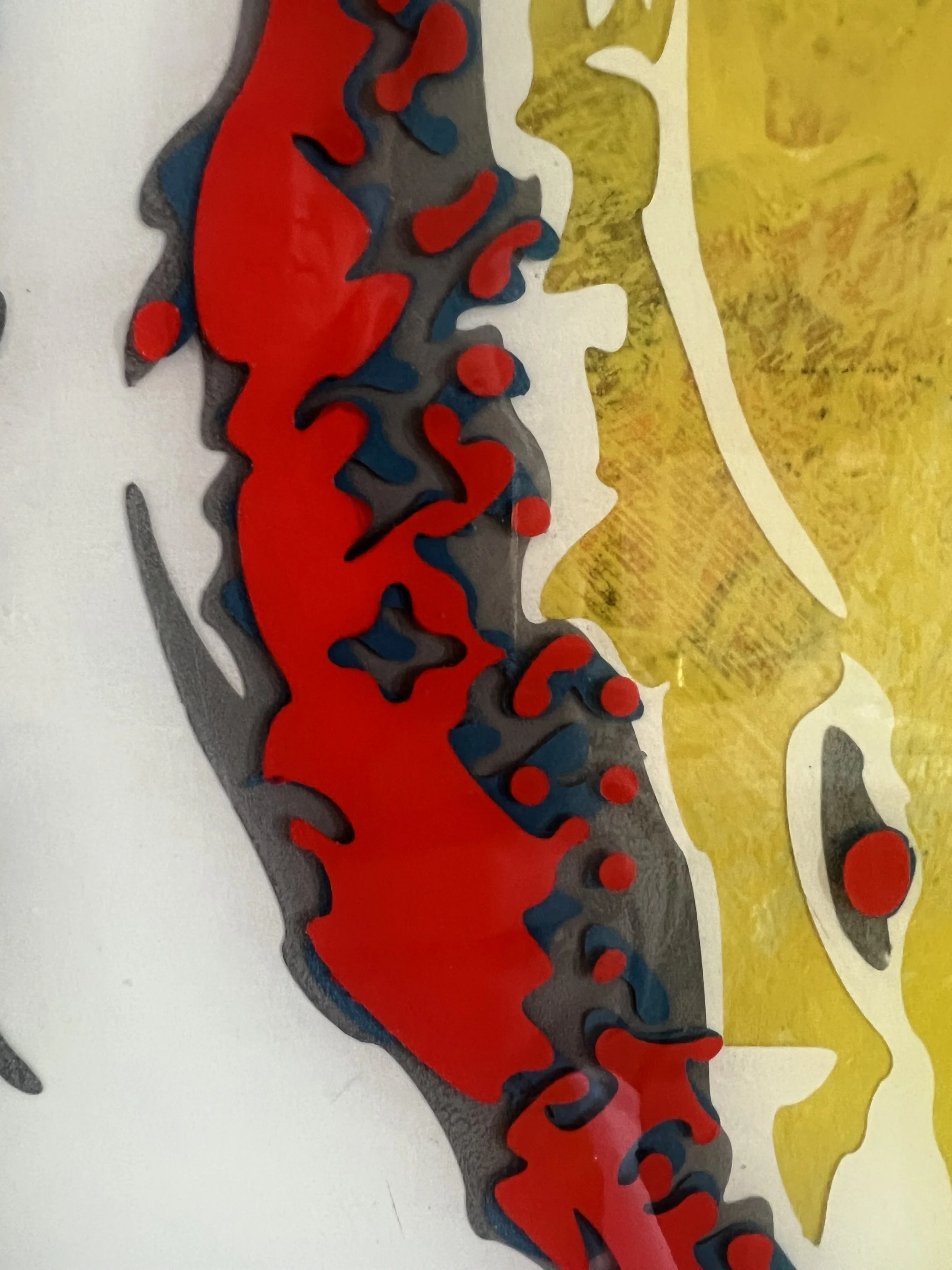 Quick return to the “Jackie” back image. I used layers separated by Resin to create some depth between the flat layers that make up her body. Is she turning away or is it an invitation for something more?